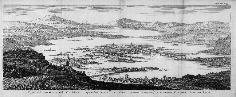 At the period of the conquest the city of Mexico had a circumference of no less than twelve miles, or nearly that of modern Berlin without its suburbs. It contained 60,000 houses, and its inhabitants were computed to number 300,000. Many other towns, most of them nearly half as large, were grouped on the islands or on the margin of Lake Tezcuco, so that the population of what might almost be called “Greater Mexico” must have amounted to several millions. The city was intersected by four great road-ways or avenues built at right angles to one another, and laid four-square with the cardinal points. Situated as it was in the midst of a lake, it was traversed by numerous canals, which were used as thoroughfares for traffic. The four principal ways described above were extended across the lake as dykes or viaducts until they met its shores.