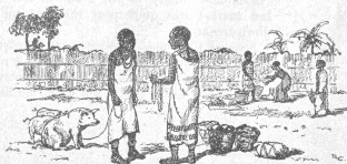 Some of these markets were noted for certain goods. Mpoko’s mother could always depend on pigs being on sale at the Nkenge market, and whoever had a pig to sell would be likely to take it there. At the Konzo market, four miles away, were good pots, calabashes, and saucepans, some of which were made by women in their village, for one of the old grandmothers was rather famous for her pottery. Other markets were known for palm wine, iron work, oil, or some other specialty, and besides these things cassava roots, peanuts, kwanga (native bread), palm oil, beans and other vegetables, grains and fowls were generally sold in all markets.
