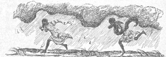 Then the hut sank under the waters, and the maidens found themselves standing on the bank without even their own beads to deck themselves with. That very moment they heard the wind and the rain sweeping through the trees, and they turned and ran as fast as their feet would carry them, back to their own village, while the wind and the rain howled behind them and the giant pelted them with stones.