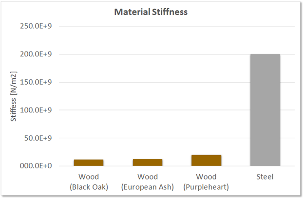 But wood is actually considerably less stiff than steel! That seems like quite the contradiction — after all, we know from firsthand experience what happens in a stiff thrust from a wooden training weapon.