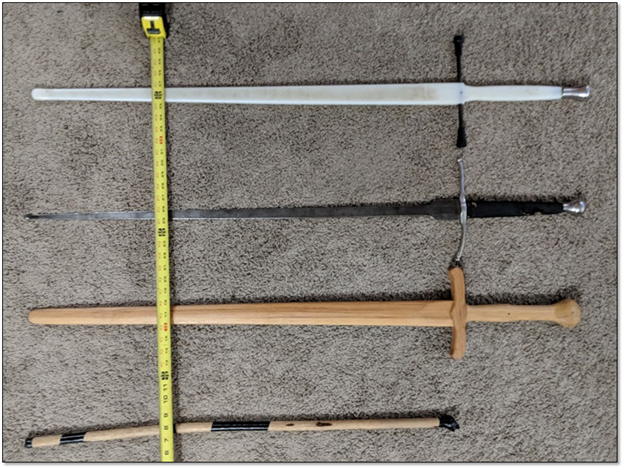 Let’s take a sweet prototype training sword* which is square in cross section.