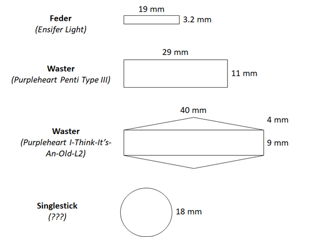 You might have also noticed that wooden training weapons tend to be much thicker than their equivalent steel training tools. A wooden waster is a ton thicker than a feder.