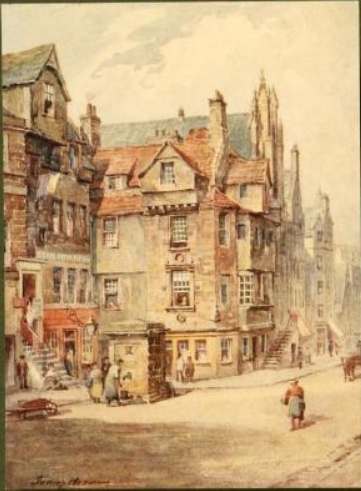 And the story of the town is as eccentric as its appearance. For centuries it was a capital thatched with heather, and more than once, in the evil days of English invasion, it has gone up in flame to heaven, a beacon to ships at sea. It was the jousting-ground of jealous nobles, not only on Greenside, or by the King's Stables, where set tournaments were fought to the sound of trumpets and under the authority of the royal presence, but in every alley where there was room to cross swords, and in the main street, where popular tumult under the Blue Blanket alternated with the brawls of outlandish clansmen and retainers.