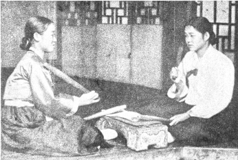 A majority of the venders are very small boys, who are doing their part to increase the family budget. The poorer Korean boy sees very little play; he must make his work his play, and it is touching, as well as inspiring, to see these little fellows sitting on the ground before their tiny fires, splitting the skins of the nuts, stirring the ones that are over the fire, and fanning the coals. Their little throats are often hoarse from singing their wares, but their bright, cheery attitude defies anything but admiration.